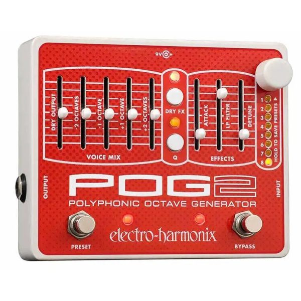 The EHX POG2 Polyphonic Octave Generator will take you even higher. Use the new attack control to fade in lush, smooth swells. Tune in the new second sub-octave to reach deeper than ever before.