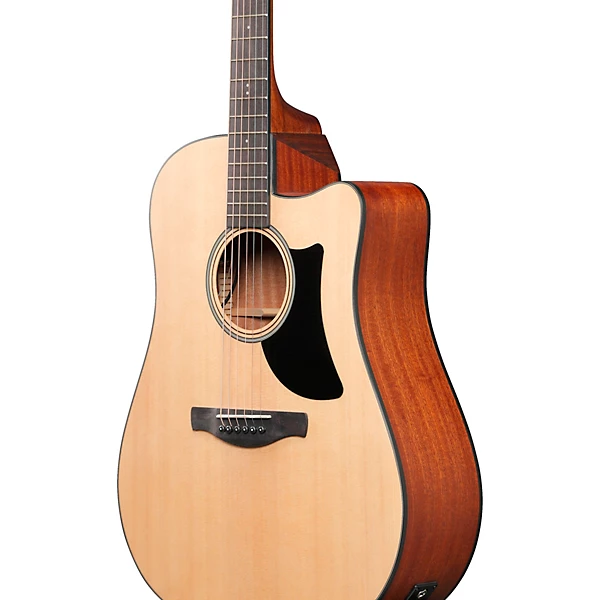 The AAD50CE features a grand dreadnought body shape with an Advanced Access cutaway constructed of a solid Sitka spruce top with X-M bracing on laminated sapele sides and back with a low gloss finish.